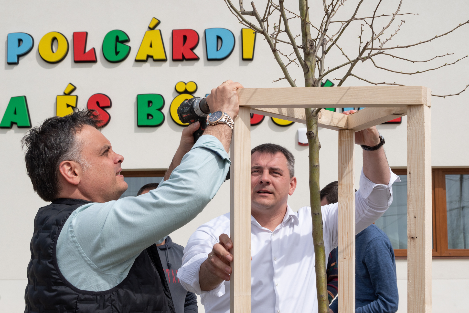 Latorcai Csaba a Kereszténydemokrata Néppárt (KDNP) Ültessünk, hogy élhessünk! elnevezésű országos programsorozata keretében őshonos magyar fafajtákat ültetett el a helyi óvoda és bölcsőde előtt Nyikos László (Fidesz-KDNP-Szeretem Polgárdit Egyesület) polgármesterrel.