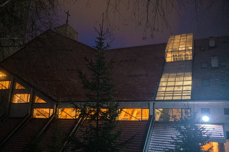 A csíkszeredai Szent Ágoston plébániatemplom megújult nyílászárói 2022. január 28-án. A templom nyílászáróit és óriási méretű üvegfelületeit a magyar kormány 26 millió forintos támogatásával cserélték ki. (Fotó: MTI / Veres Nándor)