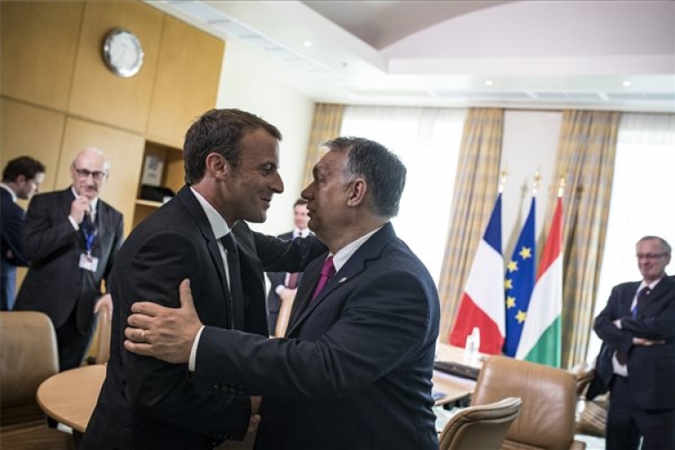Orbán Viktor miniszterelnök (j) és Emmanuel Macron francia elnök találkozója az EU és a nyugat-balkáni országok csúcstalálkozója előtt Szófiában 2018. május 17-én. (MTI Fotó: Miniszterelnöki Sajtóiroda / Szecsődi Balázs)