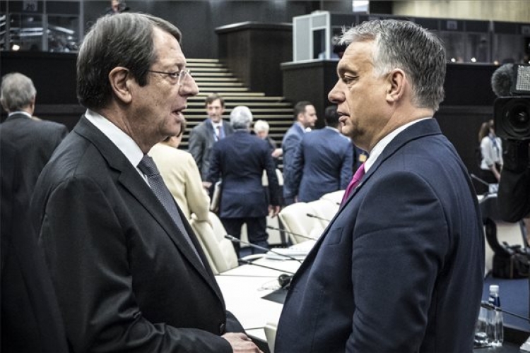 Orbán Viktor miniszterelnök (j) és Nikosz Anasztasziadisz ciprusi elnök az EU és a nyugat-balkáni országok csúcstalálkozójának kezdete előtt Szófiában 2018. május 17-én. (MTI Fotó: Miniszterelnöki Sajtóiroda / Szecsődi Balázs)