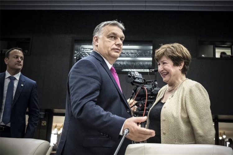 Orbán Viktor miniszterelnök (k) és Kristalina Georgieva, a Világbank vezérigazgatója (j) az EU és a nyugat-balkáni országok csúcstalálkozójának kezdete előtt Szófiában 2018. május 17-én. Balra Leo Varadkar ír miniszterelnök. (MTI Fotó: Miniszterelnöki Sajtóiroda / Szecsődi Balázs)