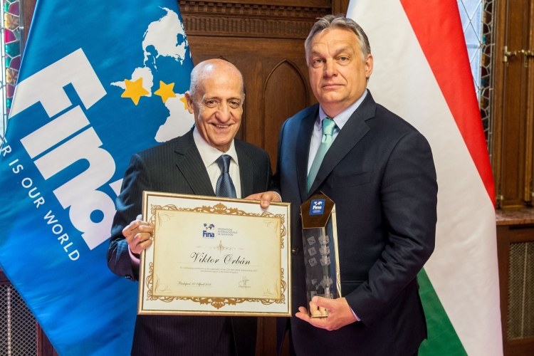 Orbán Viktor miniszterelnök pénteken az Országházban látta vendégül a Nemzetközi Úszószövetség (FINA) vezetőit, Julio C. Maglione elnököt és Cornel Marculescu ügyvezető igazgatót, valamint az alelnököket abból az alkalomból, hogy a szervezet április 26. és 28. között Budapesten tartja vízilabda világkonferenciáját – tájékoztatta az MTI-t Havasi Bertalan, a miniszterelnök sajtófőnöke.