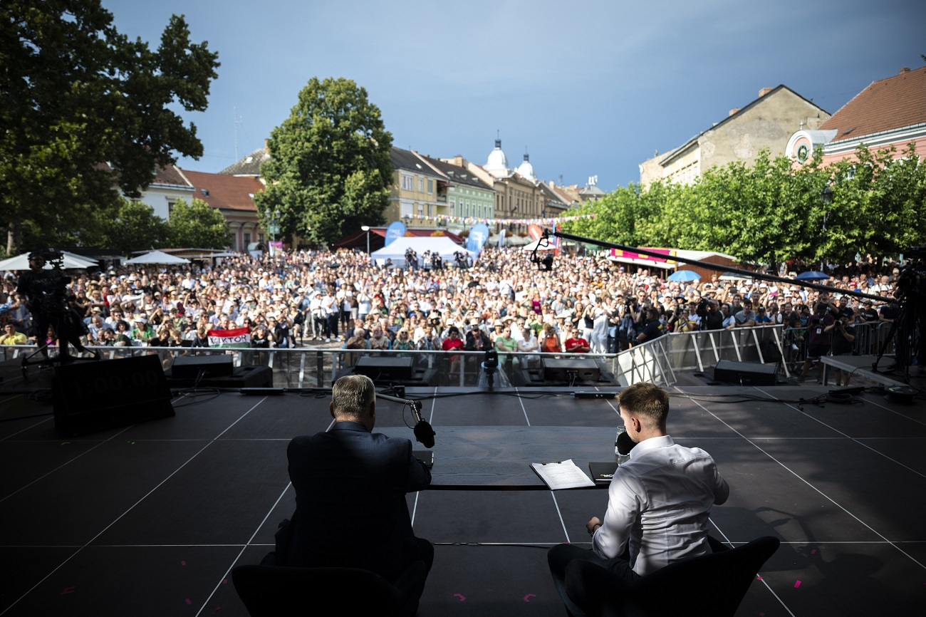 Miért hallatszik a nyári fesztiválokon a „Mocskos Fidesz!”? – szegezték a kérdést Orbán Viktornak az esztergomi MCC Feszten. A miniszterelnök Kereki Gergővel, a Mandiner online főszerkesztőjével beszélgetett, nagyjából ötezren követték az eseményt, teljesen megtelt a színpad előtti tér. Orbán Viktor a jövő évi választásról és a világ helyzetéről is beszélt, de azt is elárulta, hol fog idén nyaralni, és milyen könyvet olvas majd ez idő alatt.