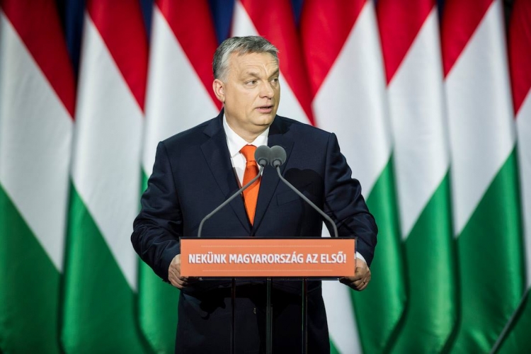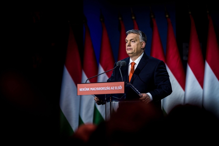 Orbán Viktor miniszterelnök hagyományos évértékelő beszédét tartja a Várkert Bazárban 2018. február 18-án. MTI Fotó: Máthé Zoltán