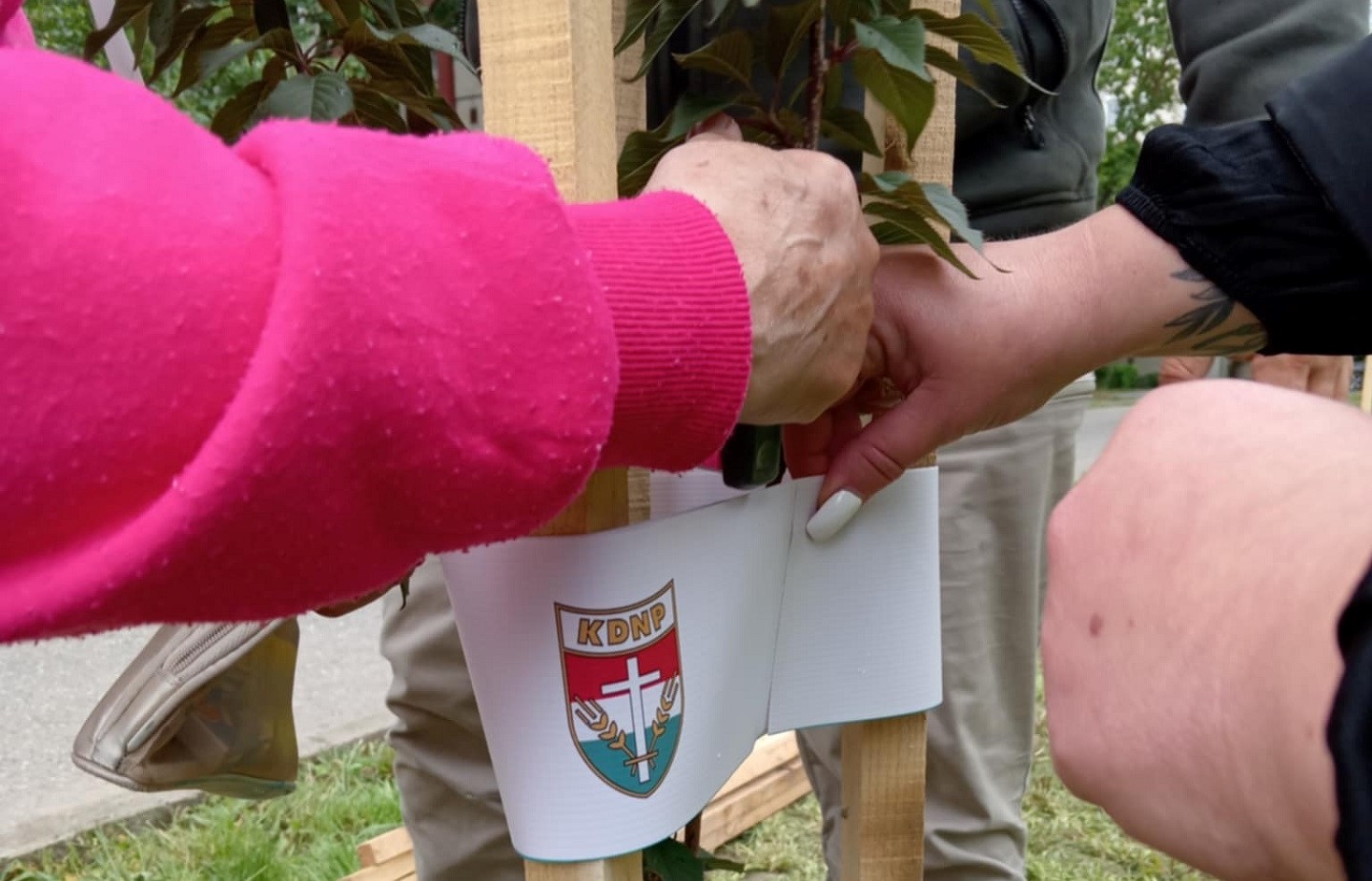 A KDNP országos központjának támogatásával egy időjárásálló kerti pad került elhelyezésre, emellett a helyi tagok aktív részvételével tizenöt facsemetét ültettek és virágoskert kialakításával tették változatossá a területet.