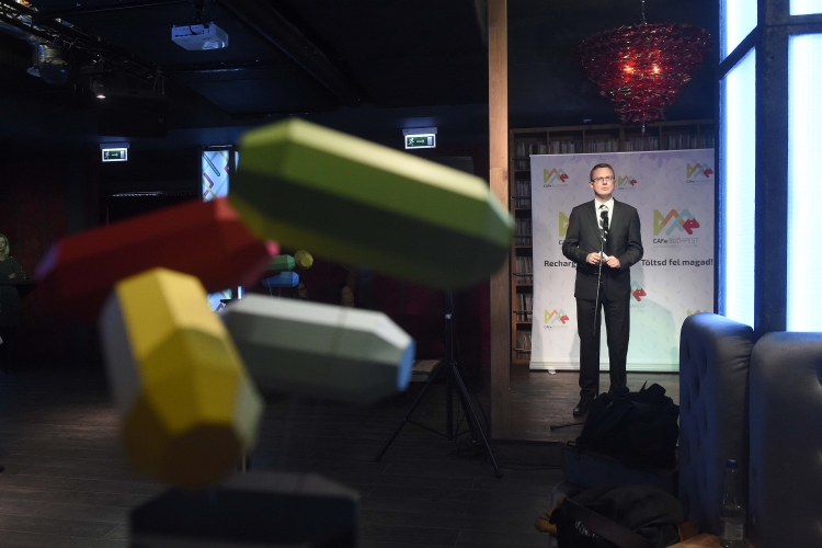 Rétvári Bence, az Emberi Erőforrások Minisztériumának (Emmi) parlamenti államtitkára beszédet mond a 28. CAFe Budapest Kortárs Művészeti Fesztivál megnyitóján a budapesti Akvárium Klubban 2019. október 4-én. (MTI fotó: Bruzák Noémi)