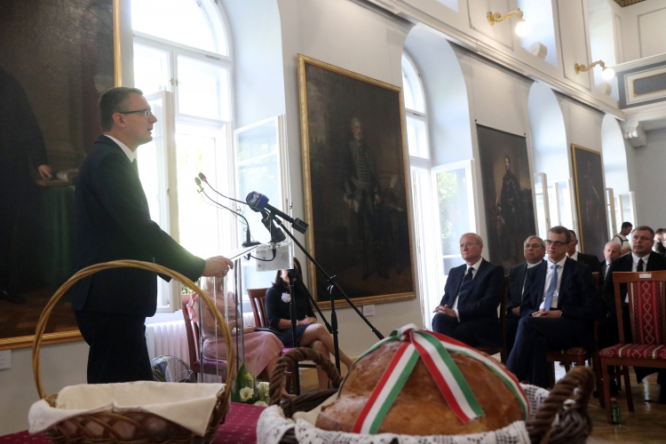 Rétvári Bence, az Emberi Erőforrások Minisztériumának parlamenti államtitkára, a KDNP alelnöke beszédet mond a Borsod-Abaúj-Zemplén Megyei Közgyűlés államalapító Szent István király tiszteletére rendezett ünnepi ülésén 2021. augusztus 19-én (Fotó: MTI / Vajda János)
