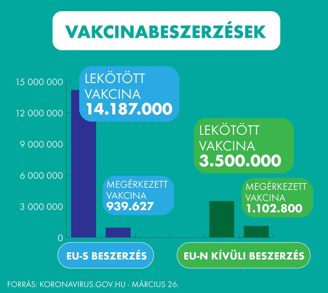 Rétvári Bence, az EMMI miniszterhelyettese közösségimédia-oldalán arra hívta fel a figyelmet, hogy „2,4 millióval több embert tudtunk volna eddig beoltani, hogyha az uniós, Magyarország által lekötött mennyiségű vakcinák beszállítása ugyanilyen ütemben halad”.