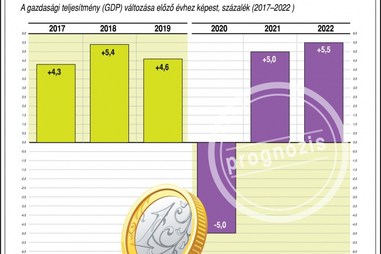 A gazdasági teljesítmény (GDP) változása előző évhez képest, százalék (2017-2022), az Európai Bizottság 2021. tavaszi előrejelzése alapján (Illusztráció: Európai Bizottság / MTVA / MTI)