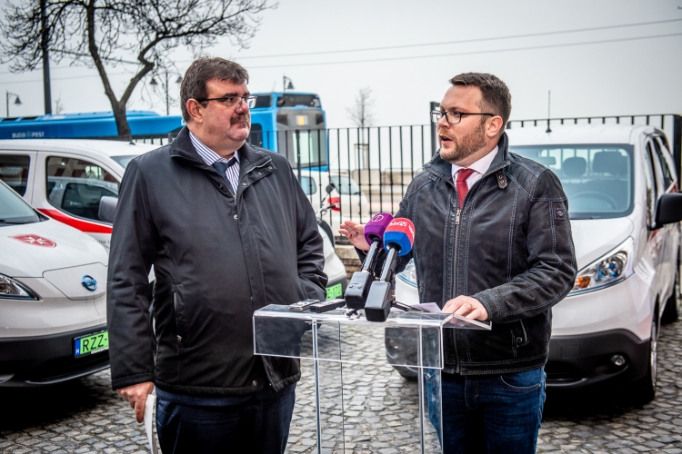 Schanda Tamás (KDNP), az Innovációs és Technológiai Minisztérium parlamenti államtitkára sajtótájékoztatót tart a Magyar Máltai Szeretetszolgálatnak adományozott elektromos autók átadása alkalmából. A fotón: Győri-Dani Lajos, a Magyar Máltai Szeretetszolgálat ügyvezető alelnöke (b) és Schanda Tamás (KDNP), az Innovációs és Technológiai Minisztérium parlamenti államtitkára (j) (Budapest, 2019.12.16. ITM fotó: Véssey Endre)