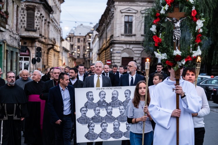 Az aradi megemlékezések sora délután a vesztőhelyen gyászszertartással és koszorúzással kezdődött. A minorita templomban tartott gyászmisét Felföldi László pécsi megyéspüspök celebrálta.
