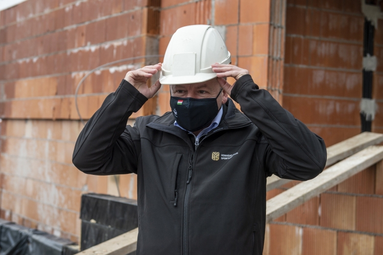 Dr. Simicskó István, a Honvédelmi Sportszövetség elnöke, a KDNP parlamenti frakcióvezetője az épülő honvédelmi sportközpontban Balassagyarmaton 2021. február 24-én (Fotó: MTI / Komka Péter)