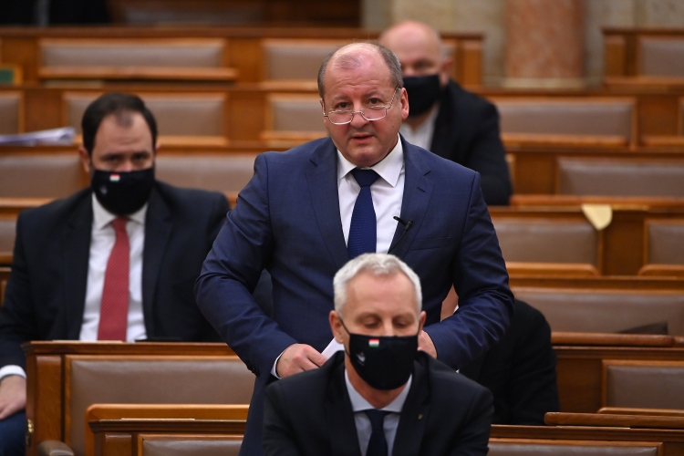 Simicskó István, a KDNP frakcióvezetője napirend előtt szólal fel az Országgyűlés plenáris ülésén 2020. december 16-án. A kép előterében Soltész Miklós államtitkár, a KDNP alelnöke (Fotó: MTI / Illyés Tibor)