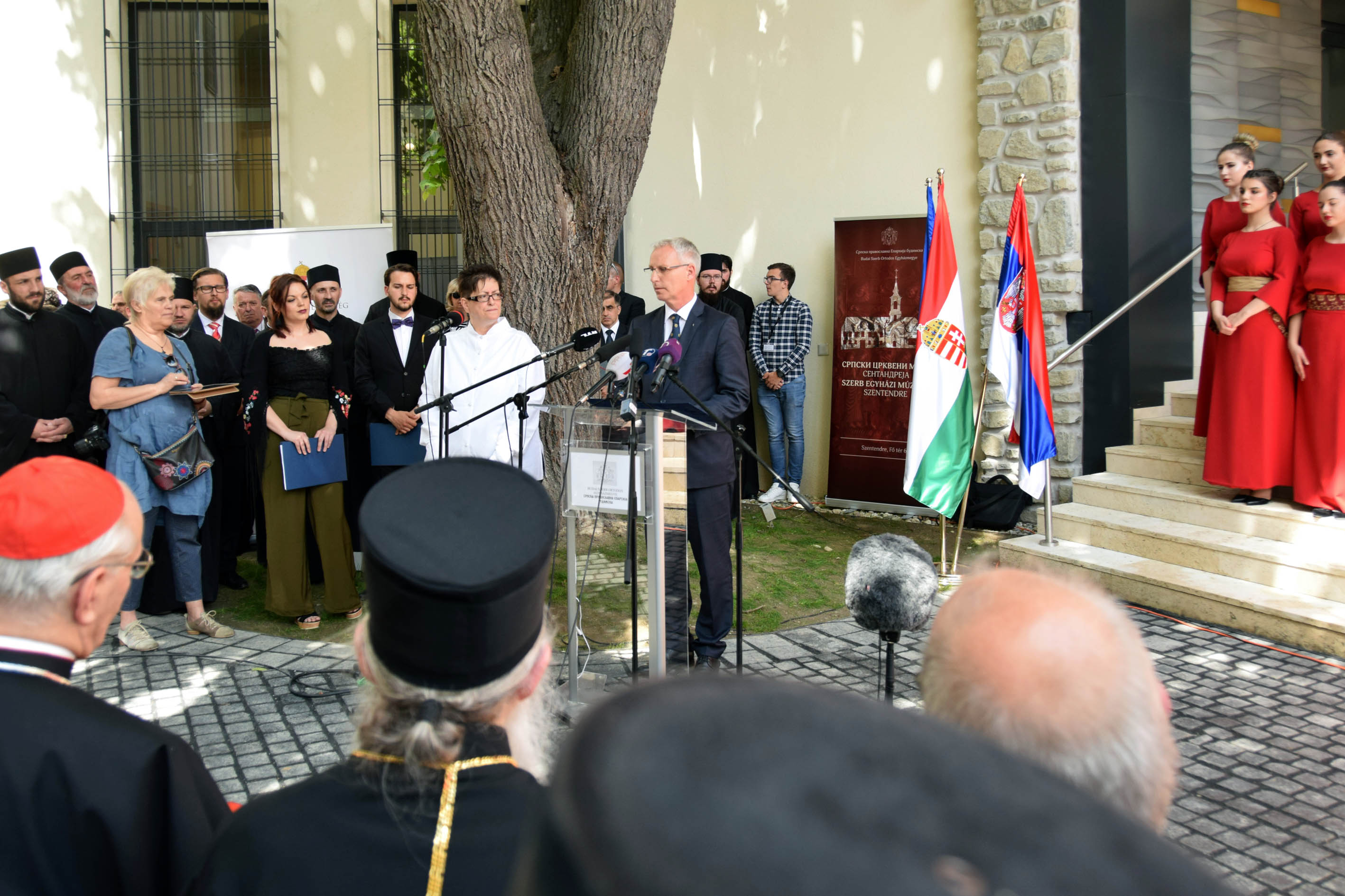 Soltész Miklós, a Miniszterelnökség egyházi és nemzetiségi kapcsolatokért felelős államtitkára és Irinej pátriárka adta át a magyar és szerb kormány támogatásával megújult Szerb Egyházi Múzeumot Szentendrén.