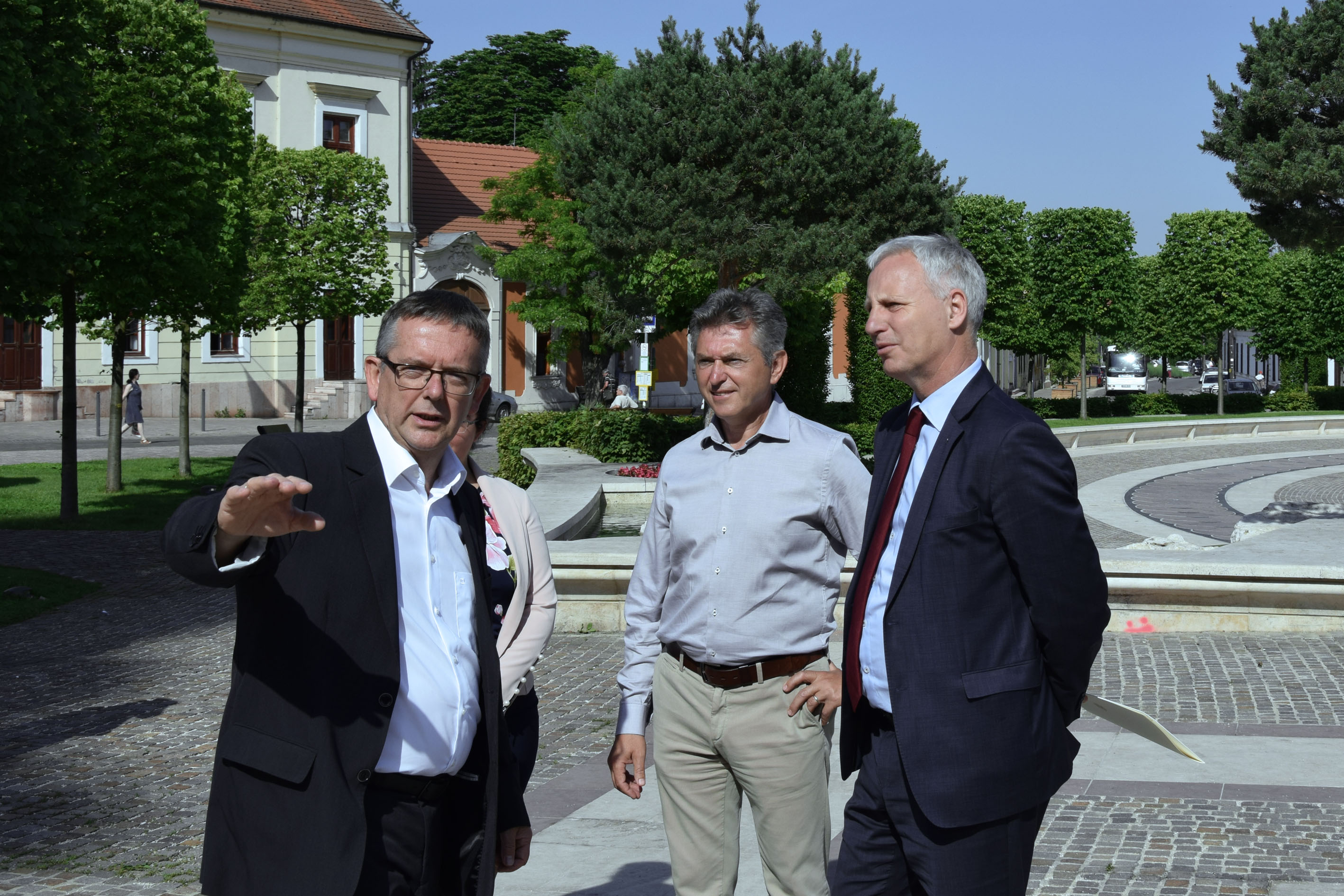 Michl József, Tata KDNP-s polgármestere, Bencsik János, a térség fideszes országgyűlési képviselője és Soltész Miklós (KDNP) államtitkár Tatán (KDNP Fotó: Váli Miklós)