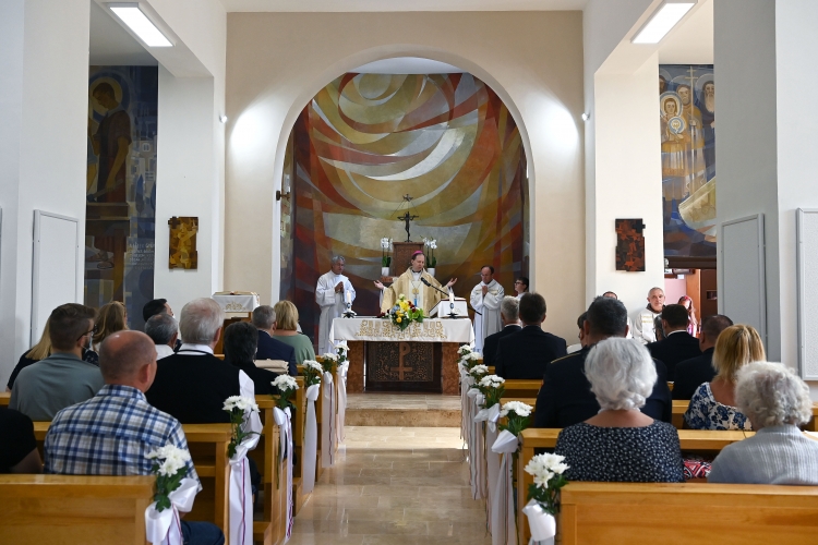 Mohos Gábor, az Esztergom-Budapesti Főegyházmegye segédpüspöke szentmisét celebrál az Esztergomhoz tartozó Pilisszentlélek megújult Szentlélek-plébániatemplomában az avatási ünnepséget követően 2020. szeptember 5-én. (MTI fotó: Bruzák Noémi)