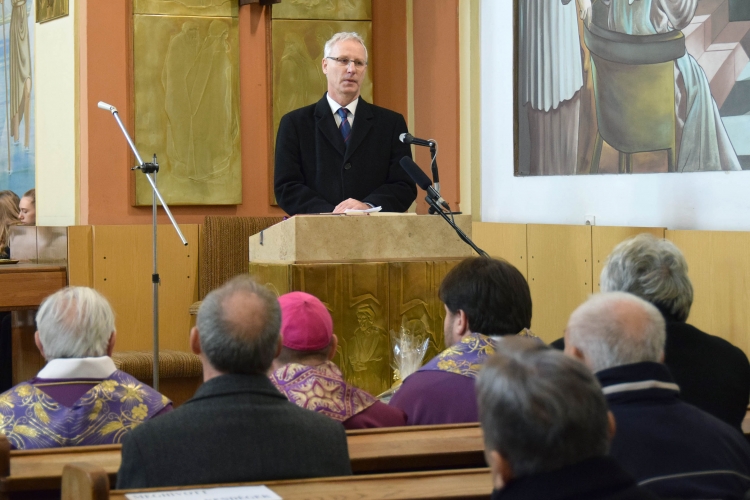Soltész Miklós (KDNP), a Miniszterelnökség egyházi és nemzetiségi kapcsolatokért felelős államtitkára beszédet mond a Dabas-Sári plébániatemplom alapításának 300. évfordulója alkalmából tartott ünnepi hálaadó szentmisén (Dabas, 2019.12.08. KDNP fotó: Váli Miklós)