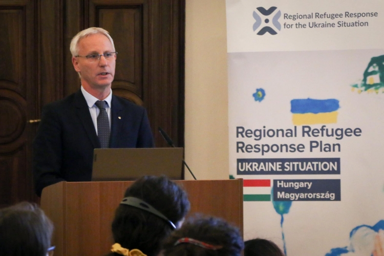 Roland Schilling, az UNHCR Közép-európai Képviseletének főképviselője arról beszélt, hogy Európa a második világháború óta legnagyobb menekültválságot éli át: az ukrán népesség mintegy egyharmadának el kellett hagynia a lakhelyét, közülük hatmillióan az országon belül kerestek menedéket, nyolcmillióan pedig átlépték az ukrán határt. Roland Schilling beszámolt arról is, hogy az ENSZ 3,9 milliárd dollárt szánt az ukránok helyben megsegítésére, emellett célirányosan támogattak hét úgynevezett befogadóországot, köztük Magyarországot.