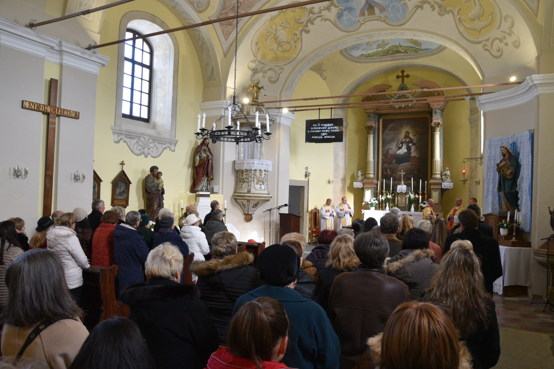 A hálaadó szentmisét Marton Zsolt, a Váci Egyházmegye püspöke mutatta be, megáldotta az 1800-ban épült egyhajós, késő barokk stílusú felújított templomot, az új oltárt és ambót, azaz a szentély és a templomhajó határán lévő emelvényt.