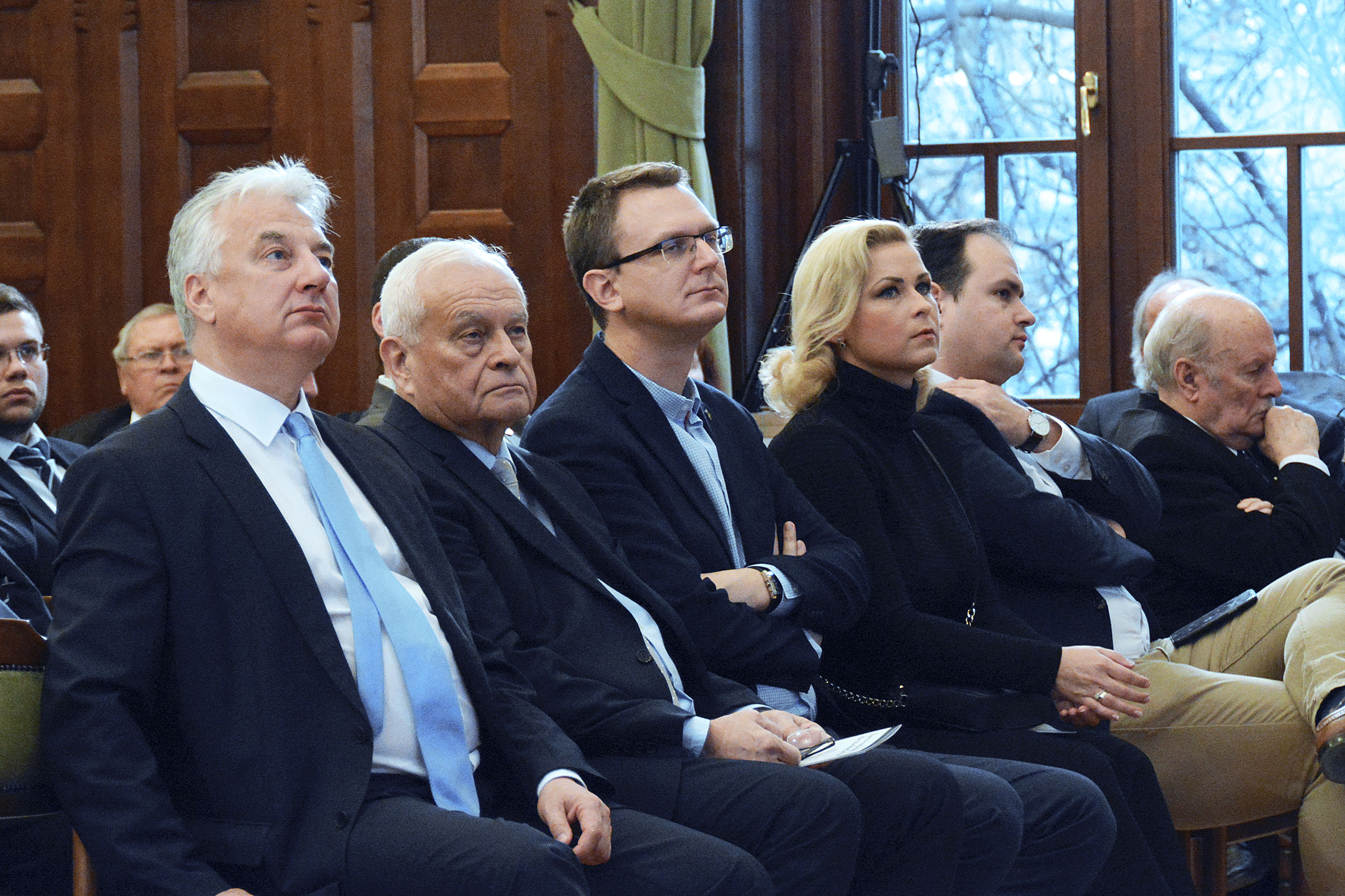Vejkey Imre frakcióvezető-helyettes, Mészáros József, a Barankovics István Alapítvány kuratóriumi elnöke és Hölvényi György, a KDNP európai parlamenti képviselője (KDNP Fotó: Váli Miklós)