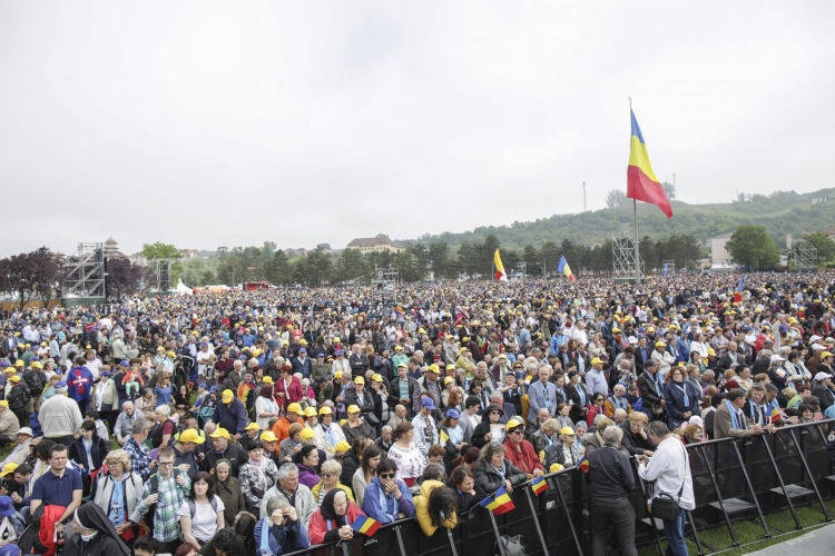 Nagyszebenből Balázsfalvára ment a Szentatya, ahol hét vértanú görögkatolikus püspököt avatott boldoggá, majd a helyi roma közösség tagjaival találkozott.