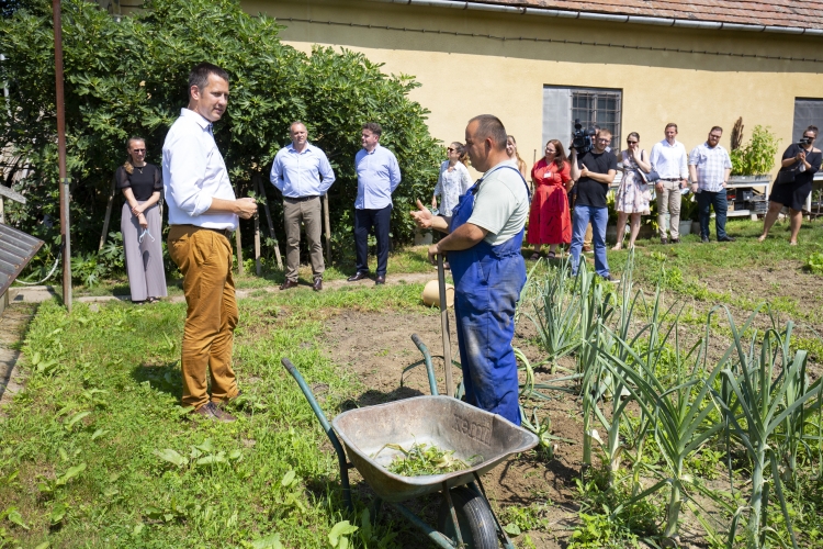 Fülöp Attila szociális ügyekért és társadalmi felzárkóztatásért felelős államtitkár (elöl, balra) Iváncon, a megváltozott munkaképességűeket foglalkoztató Vas Megyei Szakosított Otthonban, az ERFO Közhasznú Nonprofit Kft. új telephelyének átadásán 2020. augusztus 12-én. Több mint 2,2 milliárd forinttal több pénz jut jövőre a költségvetésből a megváltozott munkaképességű emberek foglalkoztatására (Fotó: MTI / Varga György)