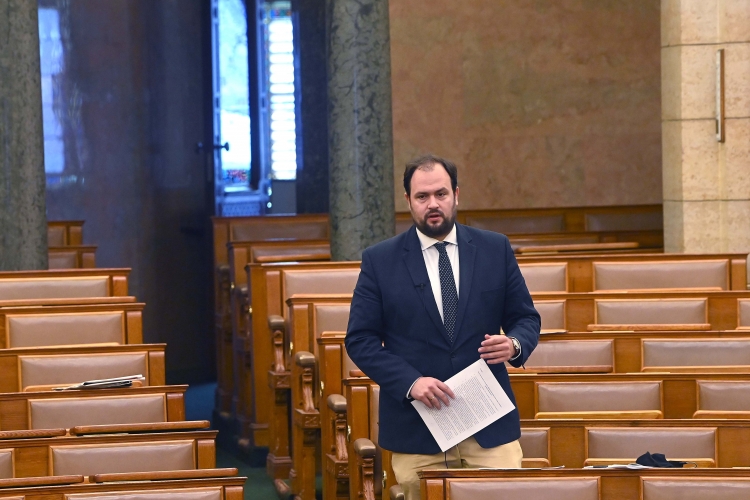 Nacsa Lőrinc, a KDNP frakciószóvivője felszólal az egyes törvényeknek az egyszülős családok életkörülményeinek javítása érdekében történő módosításáról szóló törvényjavaslat vitájában az Országgyűlés plenáris ülésén 2021. május 18-án (Fotó: MTI / Bruzák Noémi)