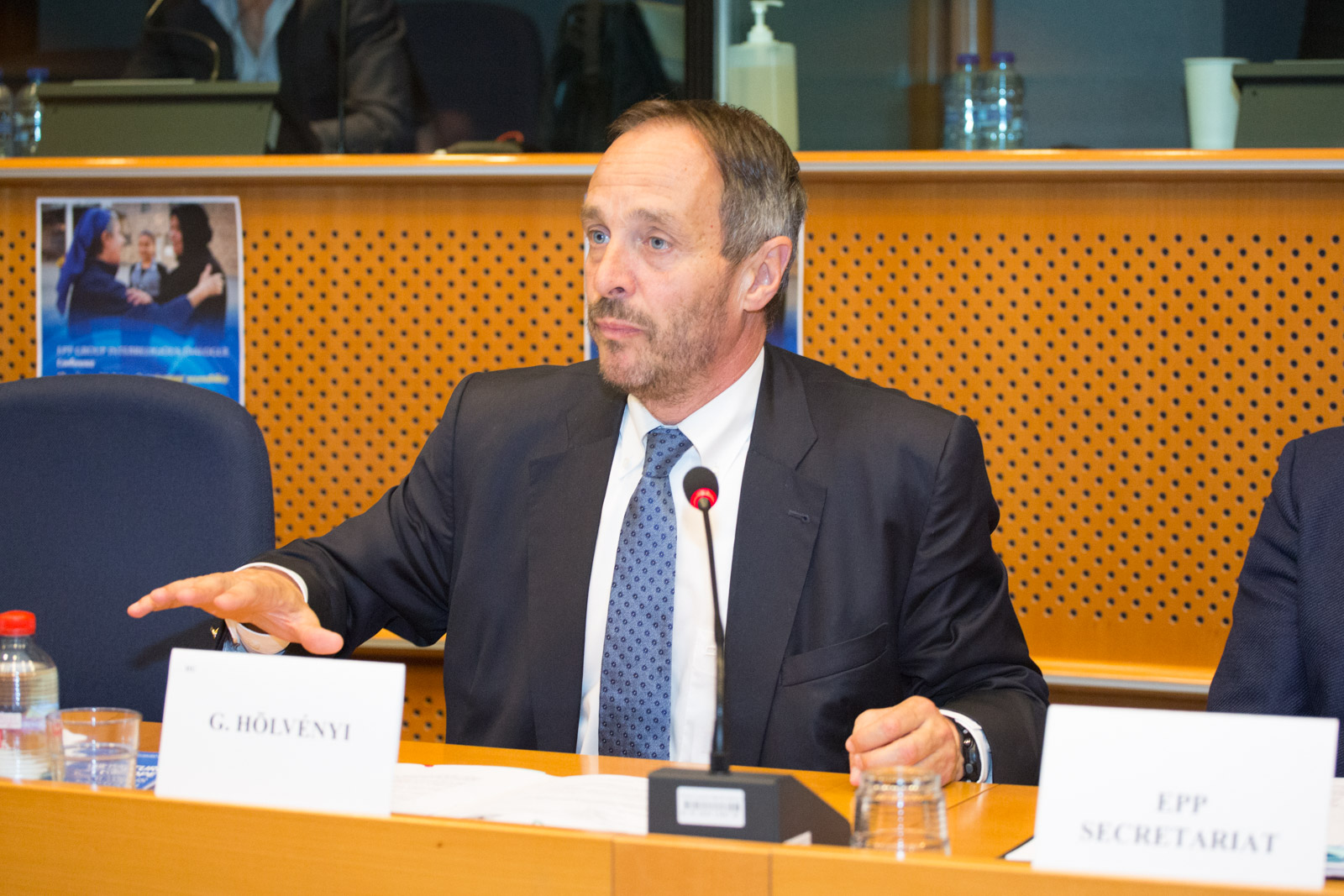 Hölvényi György kereszténydemokrata EP-képviselő az Európai Néppárt vallásközi párbeszédért felelős munkacsoportjának konferenciáján Brüsszelben