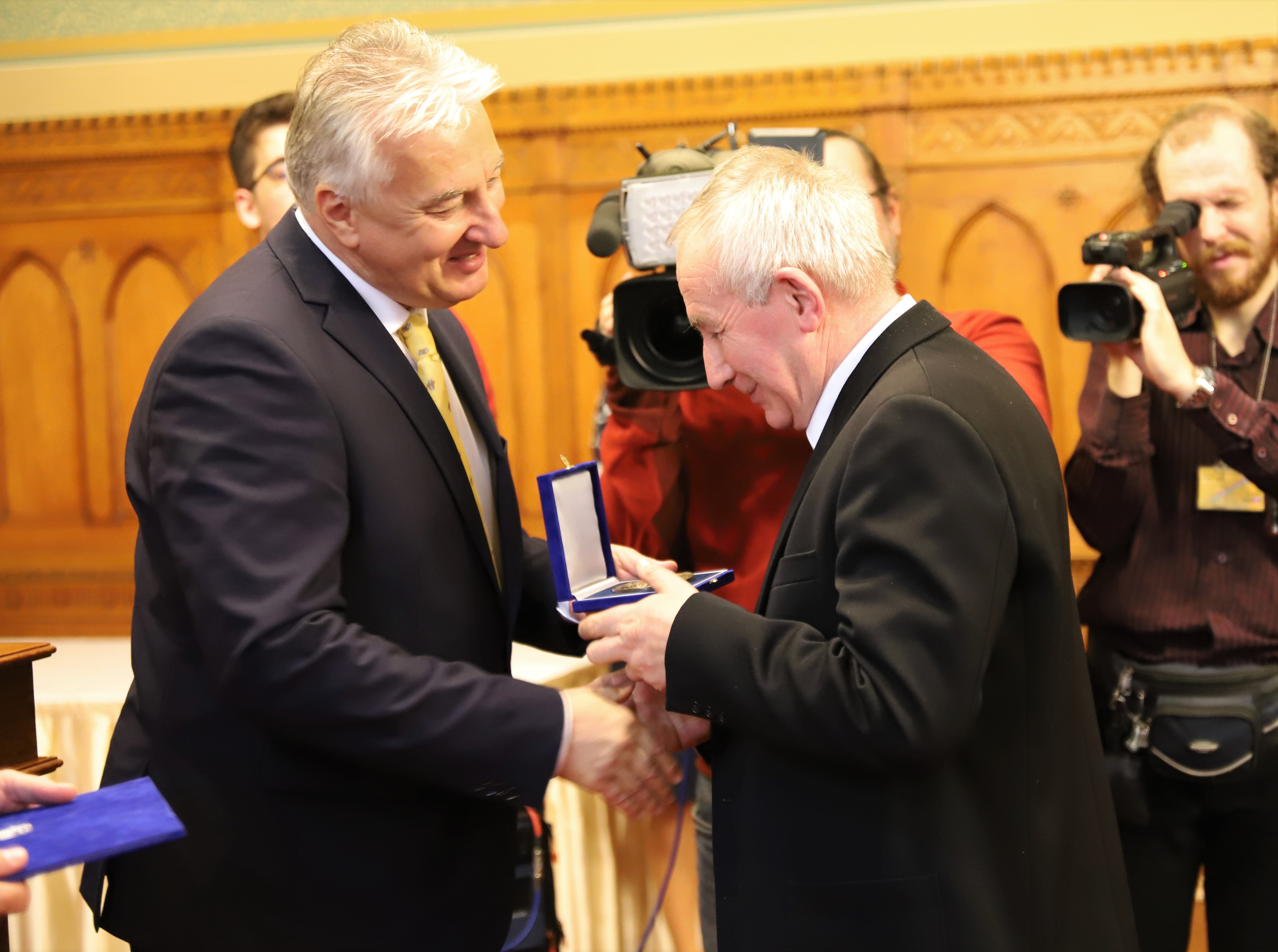 Semjén Zsolt (KDNP), miniszterelnök-helyettes átadja a Fraknói díjat Rokay Zoltán teológusnak (Budapest, 2019.10.08.)