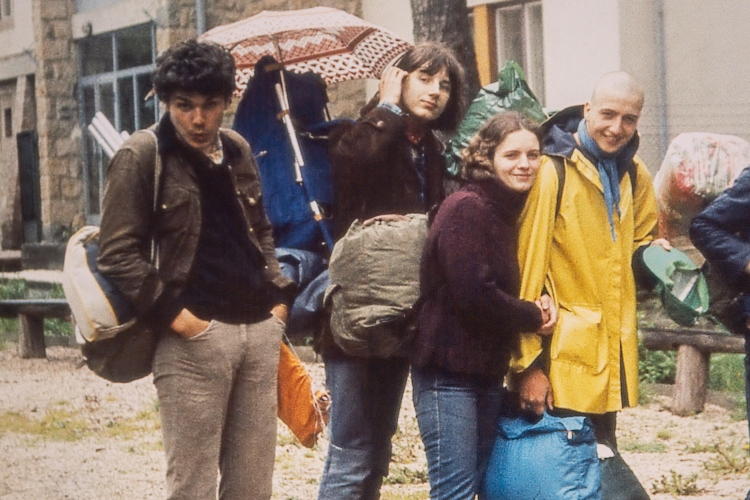 Szabó Sípos Barnabás, Semjén Zsolt (babos kendővel) és Bayer Zsolt Litkey Erikával. Szilágyi Erzsébet Gimnázium, 1980.