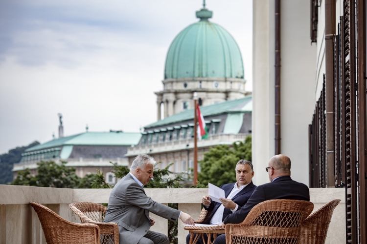 Semjén Zsolt miniszterelnök-helyettes (balra), a KDNP, Orbán Viktor miniszterelnök (középen), a Fidesz és Brenzovics László, a KMKSZ elnöke (Fotó: MTI / Miniszterelnöki Sajtóiroda / Szecsődi Balázs)