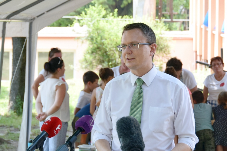 Rétvári Bence (KDNP), az Emberi Erőforrások Minisztériumának parlamenti államtitkára a rétsági általános iskolában tartott sajtótájékoztatón (2019.06.27. KDNP fotó: Váli Miklós)