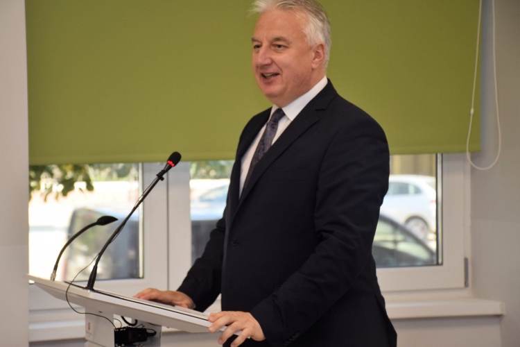 Semjén Zsolt (KDNP), miniszterelnök-helyettes beszédet mond a Bolyai János Szakkollégium ünnepélyes felavatásán (Temesvár, 2019.10.02. KDNP fotó)