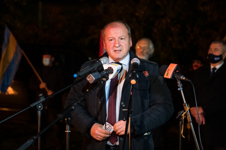 Simicskó István, a KDNP frakcióvezetője beszédet mond Diósdon a Székely autonómia napjának alkalmából megtartott megemlékezésen (Diósd, 2020.10.25. KDNP fotó)