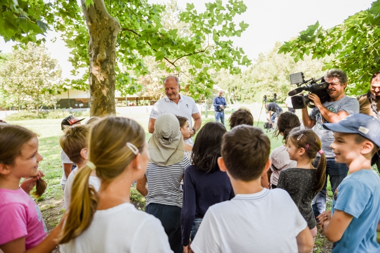 Simicskó István, a KDNP frakcióvezetője, Újbuda országgyűlési képviselője a napközis tábor résztvevőivel (KDNP fotó)