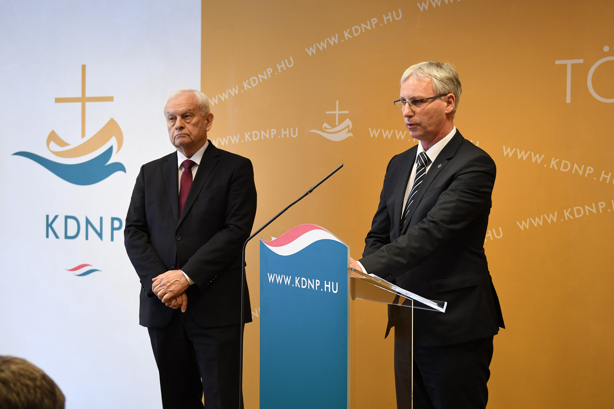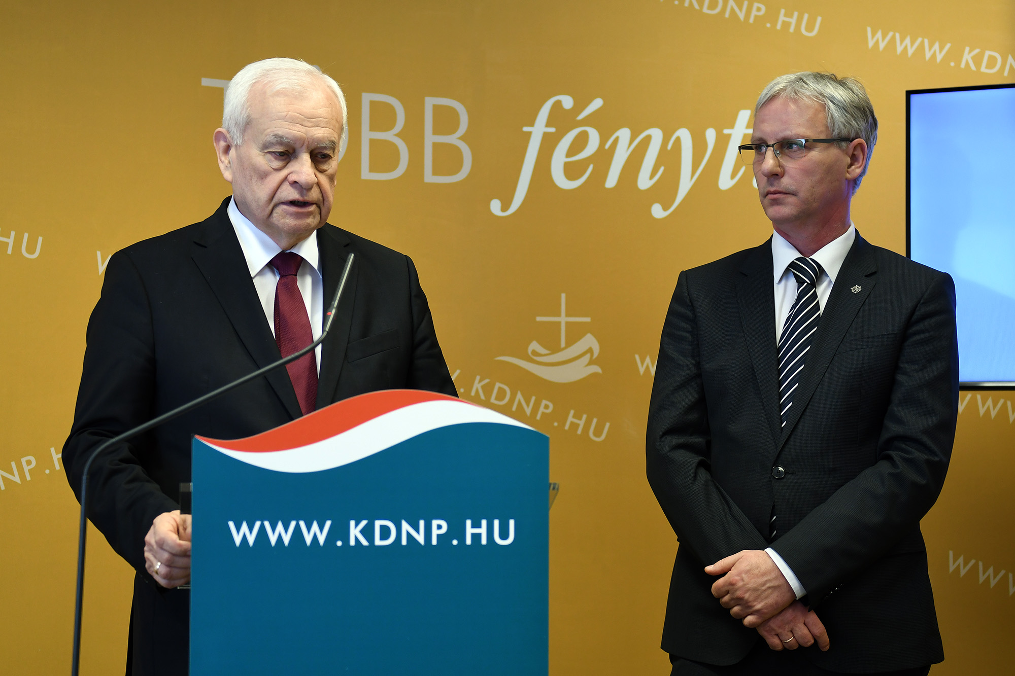 Harrach Péter, a Kereszténydemokrata Néppárt frakcióvezetője és Soltész Miklós, a KDNP alelnöke (Fotó: Steindl Gabriella)