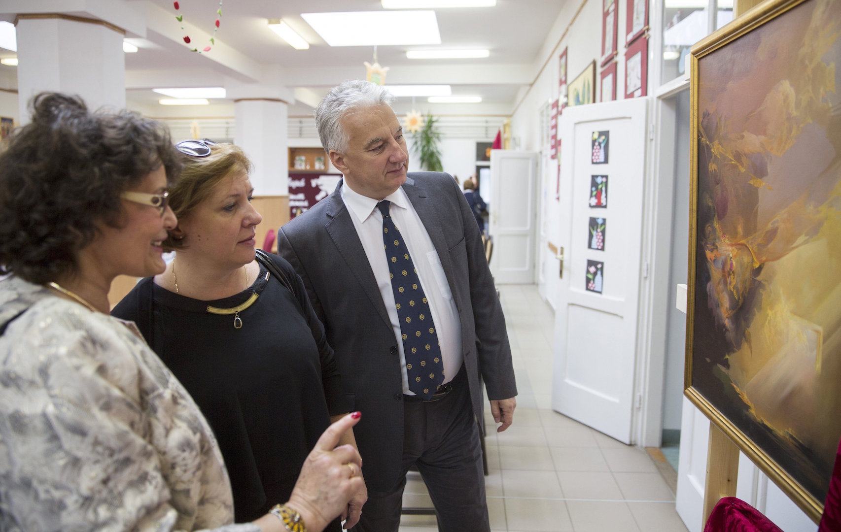 Semjén Zsolt megnyitó beszédében kiemelte: Latorcai-Ujházi Aranka, az iskola egykori diákja, Latorcai Jánosnak, az Országgyűlés alelnökének felesége művészetében a „keleti és a nyugati kereszténység hagyományai", valamint "a művész akarata és a misztikus alázata" egyszerre jelenik meg.