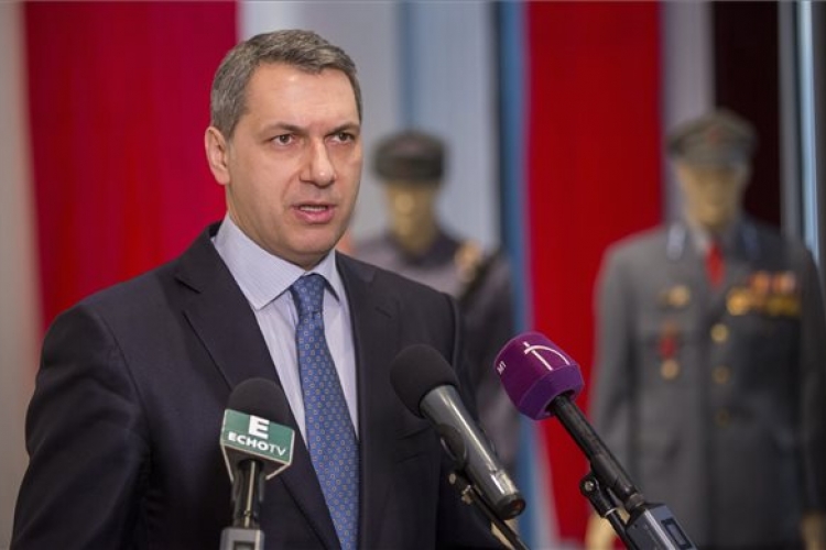 Lázár János, a Miniszterelnökséget vezető miniszter beszédet mond a Kádár-huszárok és pártkatonák. Munkásőrök Hódmezővásárhelyen 1957-1989 című kiállítás megnyitóján a hódmezővásárhelyi Emlékpontban 2017. március 17-én. (Fotó: Rosta Tibor – MTI)