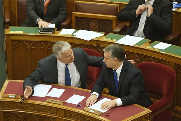 Orbán Viktor miniszterelnök és Semjén Zsolt nemzetpolitikáért felelős miniszterelnök-helyettes az Országgyűlés 1956-2016 - Tele volt halottakkal a tér... címmel megrendezett ünnepi ülésén az Országházban 2016. október 25-én. (MTI Fotó: Koszticsák Szilárd)