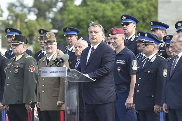 „Elsőként mutattuk meg azt is: nem fogjuk hagyni, hogy tömegével ültessenek a nyakunkra olyan embereket, akikről nem tudjuk, kicsodák, és milyen szándékkal érkeznek” – fogalmazott a kormányfő a határvadász-avatáson.
