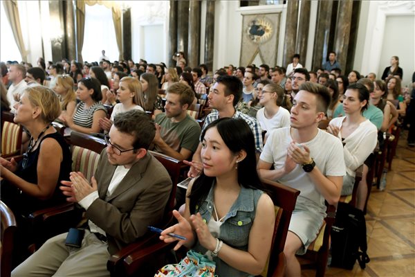 Résztvevők az Eötvös Loránd Tudományegyetem (ELTE) Kárpát-medencei magyar nyári egyetemének megnyitóján az ELTE Állam- és Jogtudományi Karának dísztermében 2017. július 11-én. (MTI Fotó: Koszticsák Szilárd)