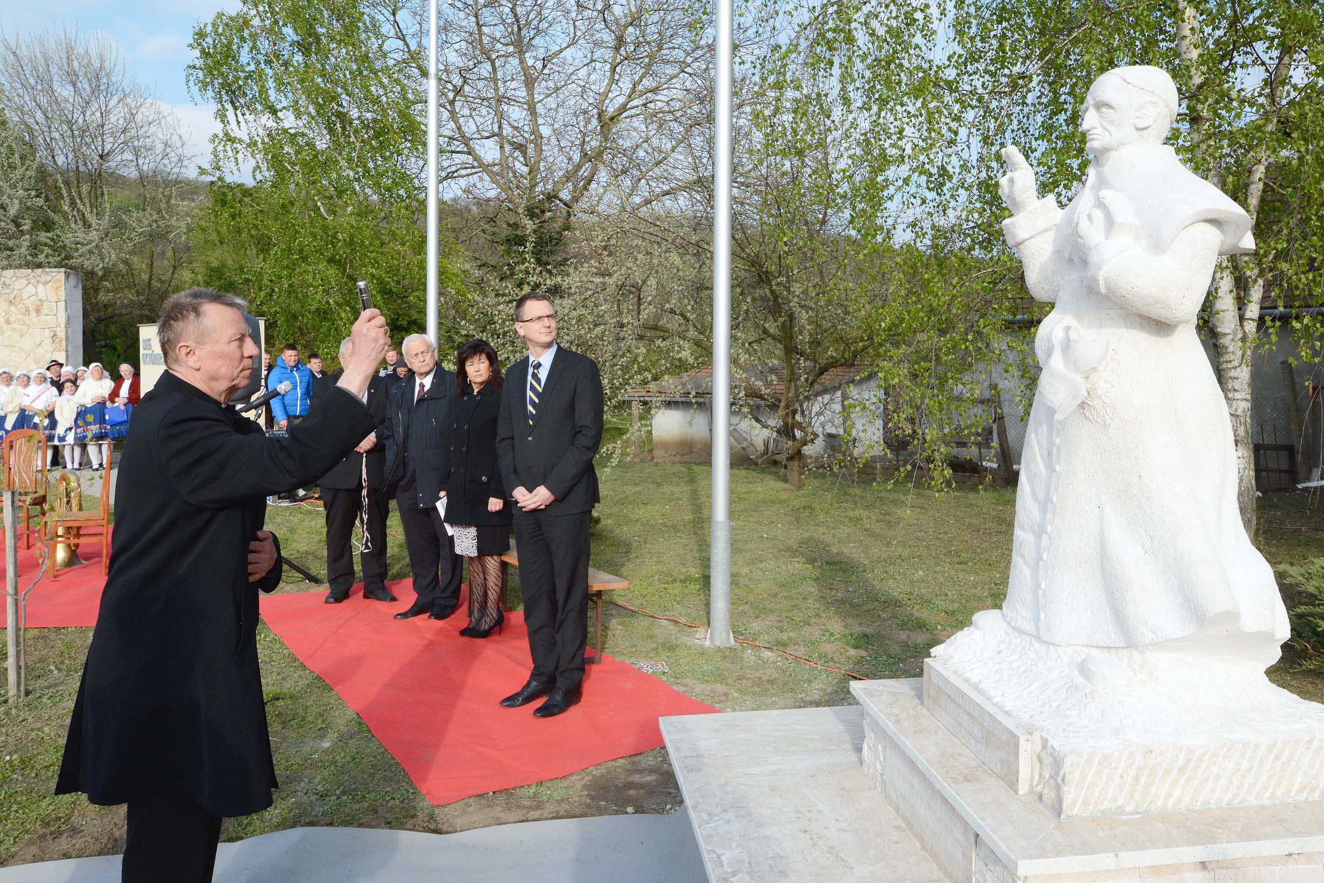 „Szükségünk van olyan helyekre, ahol fejet hajthatunk, ahol hálát adhatunk és ahol imádkozhatunk" – fogalmazott Beer Miklós váci megyés püspök, hozzátéve: ez a szobor alkalom a fejhajtásra, az imádságra, a hazáért, a nemzetért, az egyházért való fohászkodásra.