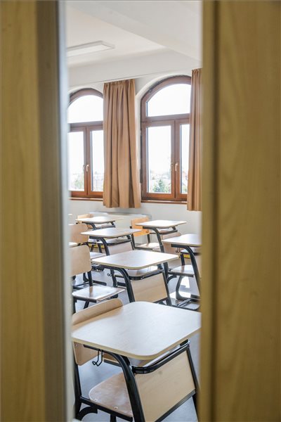 Az Arany János Gimnázium új épületegyüttesének egyik tanterme Nagyszalontán az átadás napján 2017. szeptember 11-én. (MTI Fotó: Rosta Tibor)