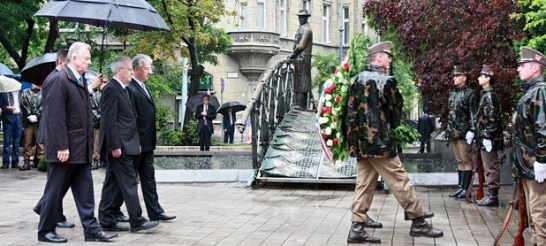 Sólyom László, Schmitt Pál és Semjén Zsolt együtt koszorúzott