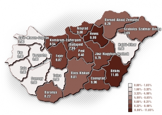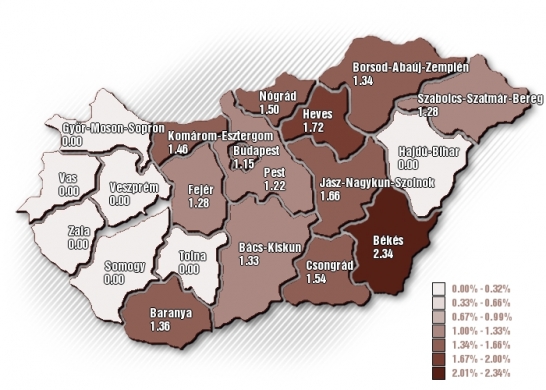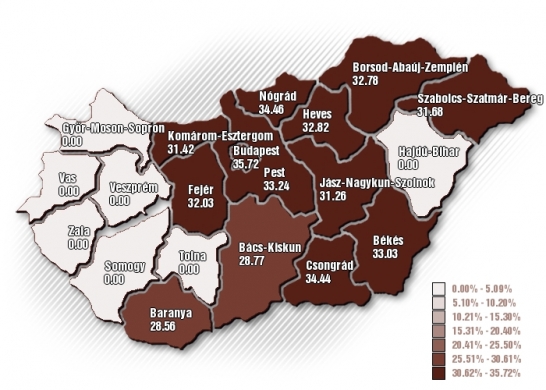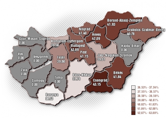 A legtöbben Budapesten (43,61 százalék), míg a legkevesebben Baranyában (36,53 százalék) szavaztak. A hazai régiók közül este fél hatig a legtöbben Közép-Magyarországon (43,38 százalék), míg a legkevesebben a Dél-Dunántúlon (36,53 százalék) voksoltak.