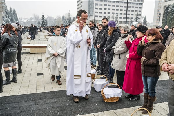 Csíkszeredában több ezren szenteltették meg vasárnap reggel húsvéti ételeiket a római katolikus egyház által szervezett szabadtéri szertartáson.