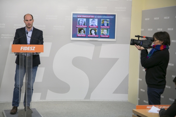 A Fidesz-KDNP szerint ha az ellenzéken múlna, akkor nem lenne adócsökkentés. A kormánypártok véleményét ismertető Hollik István KDNP-s országgyűlési képviselő szerdai budapesti sajtótájékoztatóján bemutatott egy Akik nem támogatták az adócsökkentést című tablót, amely azokat az ellenzéki politikusokat ábrázolta, akik a decemberi parlamenti zárószavazáson nem támogatták az adócsökkentéseket.