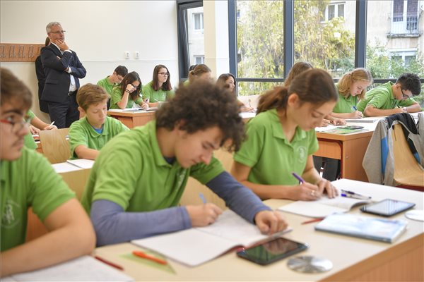 Soltész Miklós, az Emberi Erőforrások Minisztériumának egyházi, nemzetiségi és civil társadalmi kapcsolatokért felelős államtitkára (b) a Hám János Római Katolikus Teológiai Líceum új szaktantermeinek átadásán partiumi Szatmárnémetiben 2017. október 27-én. A magyar kormány támogatásával három új szaktanteremmel bővült az intézmény. (MTI Fotó: Czeglédi Zsolt)