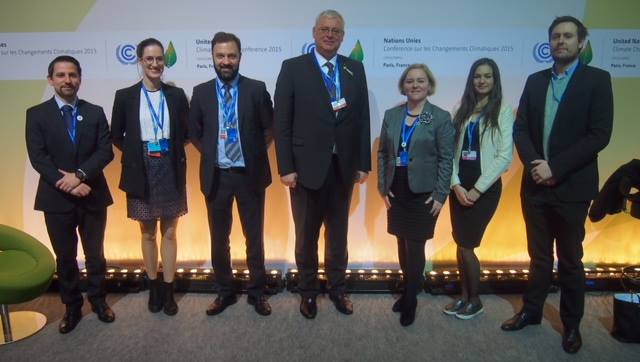 A magyar delegáció tagjai a párizsi klímakonferencián, középen Dr. Aradszki András és Makai Martina
