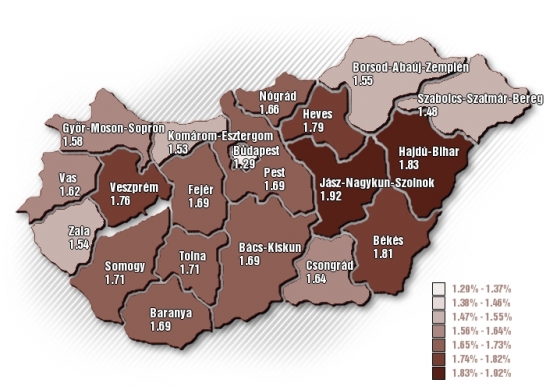 A részvételi arány 7 órakor Jász-Nagykun-Szolnok megyében volt a legmagasabb, 1,92 százalék, ami 6.153 szavazót jelent. A legalacsonyabb részvételi arány Szabolcs-Szatmár-Bereg megyében volt, 1,48 százalék, ebben a megyében 6.521-en voksoltak.